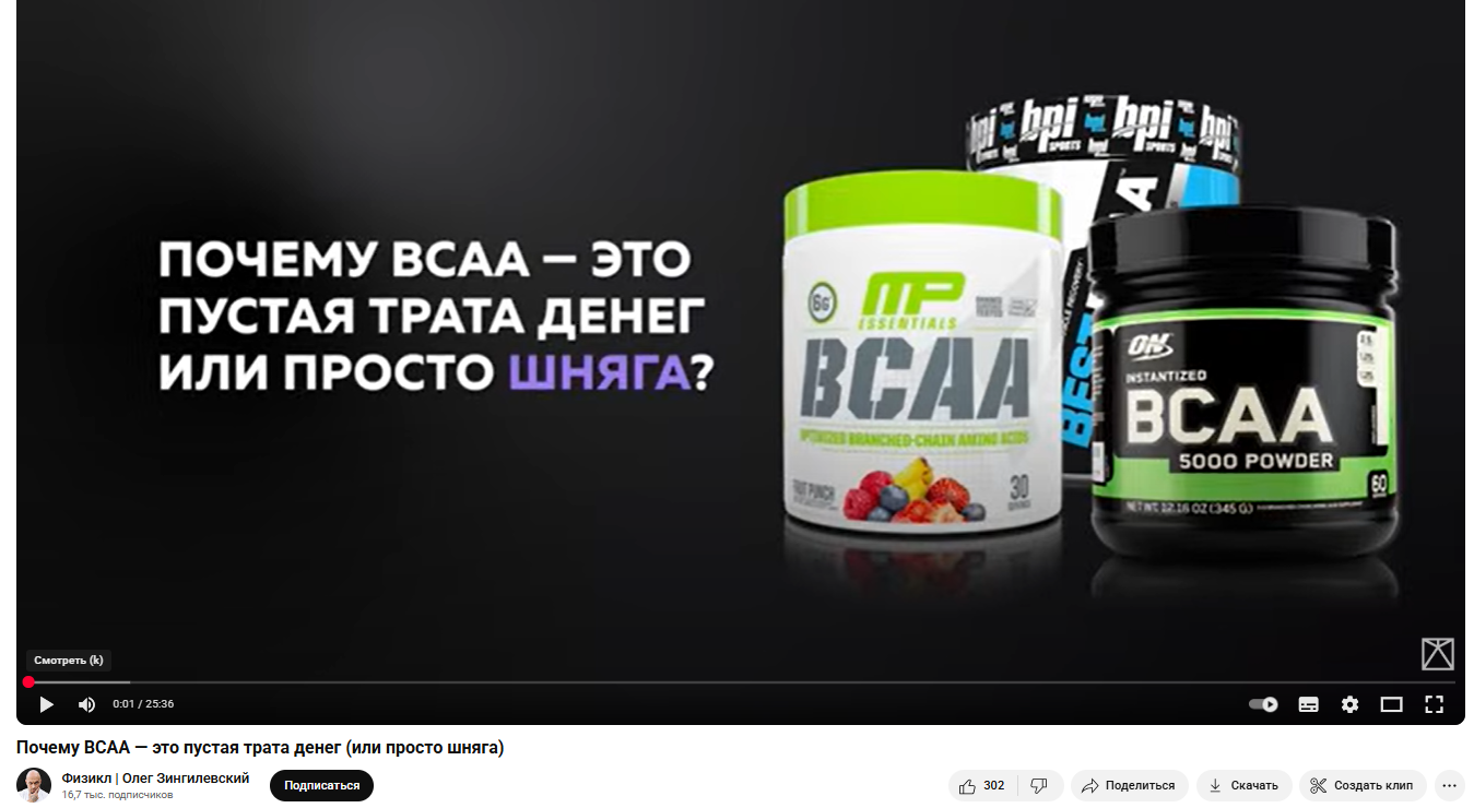 “ВСАА одна из самых популярных спортивных добавок, в которой нет смысла для 99% людей”1