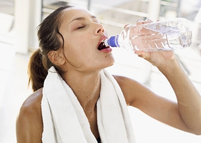 Всем известно, что обезвоживание чревато не только сухостью во рту, но и проблемами с сердцем и мозгом, вплоть до летального исхода. Но мы теряем жидкость постоянно, даже сидя на диване и не потея - до 1,5 литров в день испаряется с нашей кожи и уходит с каждым выдохом. А что тогда говорить про тренировку? Если при легкой пробежке в жаркую погоду мы теряем порядка 900 мл в час, то при интенсивной нагрузке мы потеем уже литрами. Поэтому и звучат везде рекомендации пить не меньше 2 л воды в день.