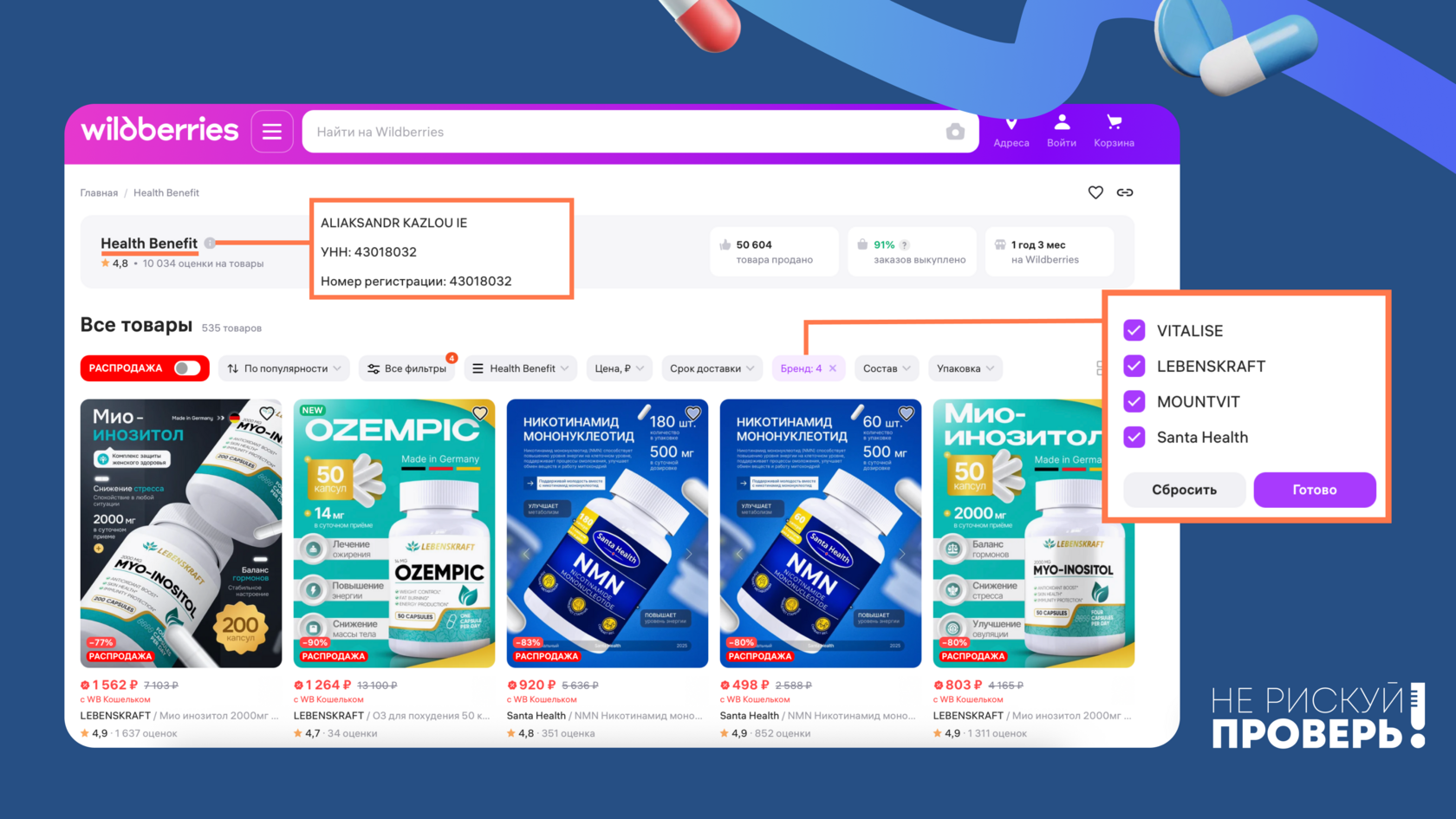Отдельного рассмотрения заслуживает масштаб распространения. Судя по количеству карточек и заказов, речь идёт о массовом сегменте рынка, а не о нишевом предложении. В таких условиях потенциальные риски перестают быть индивидуальной проблемой отдельных покупателей и приобретают общественное значение, поскольку затрагивают вопросы санитарной безопасности и защиты потребителей.