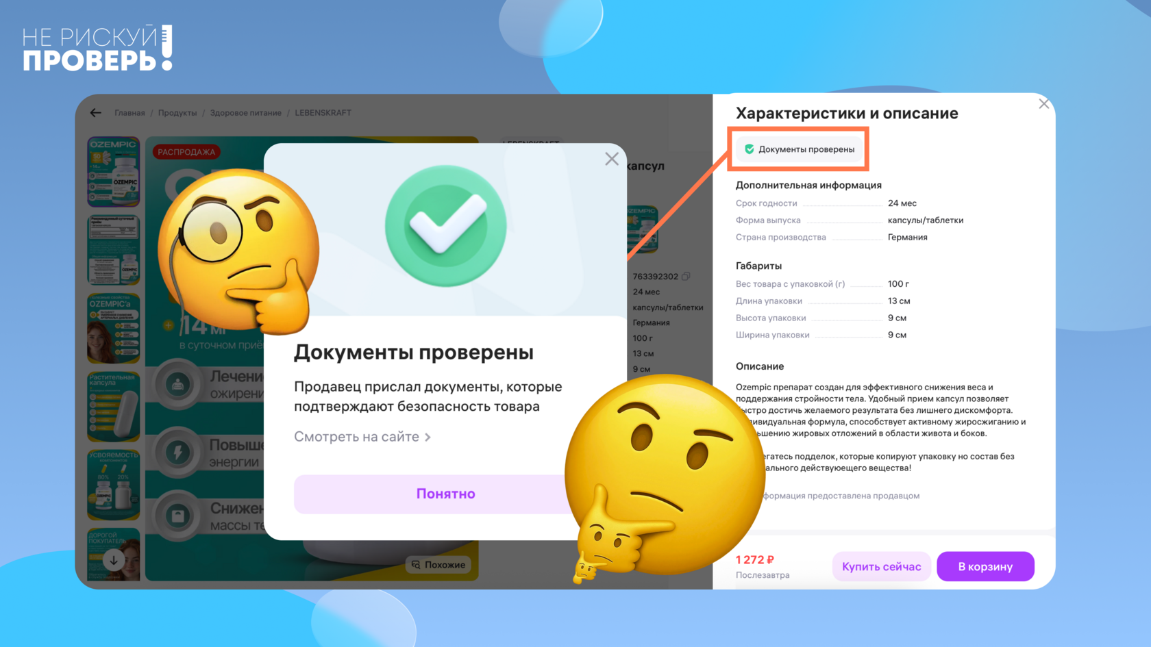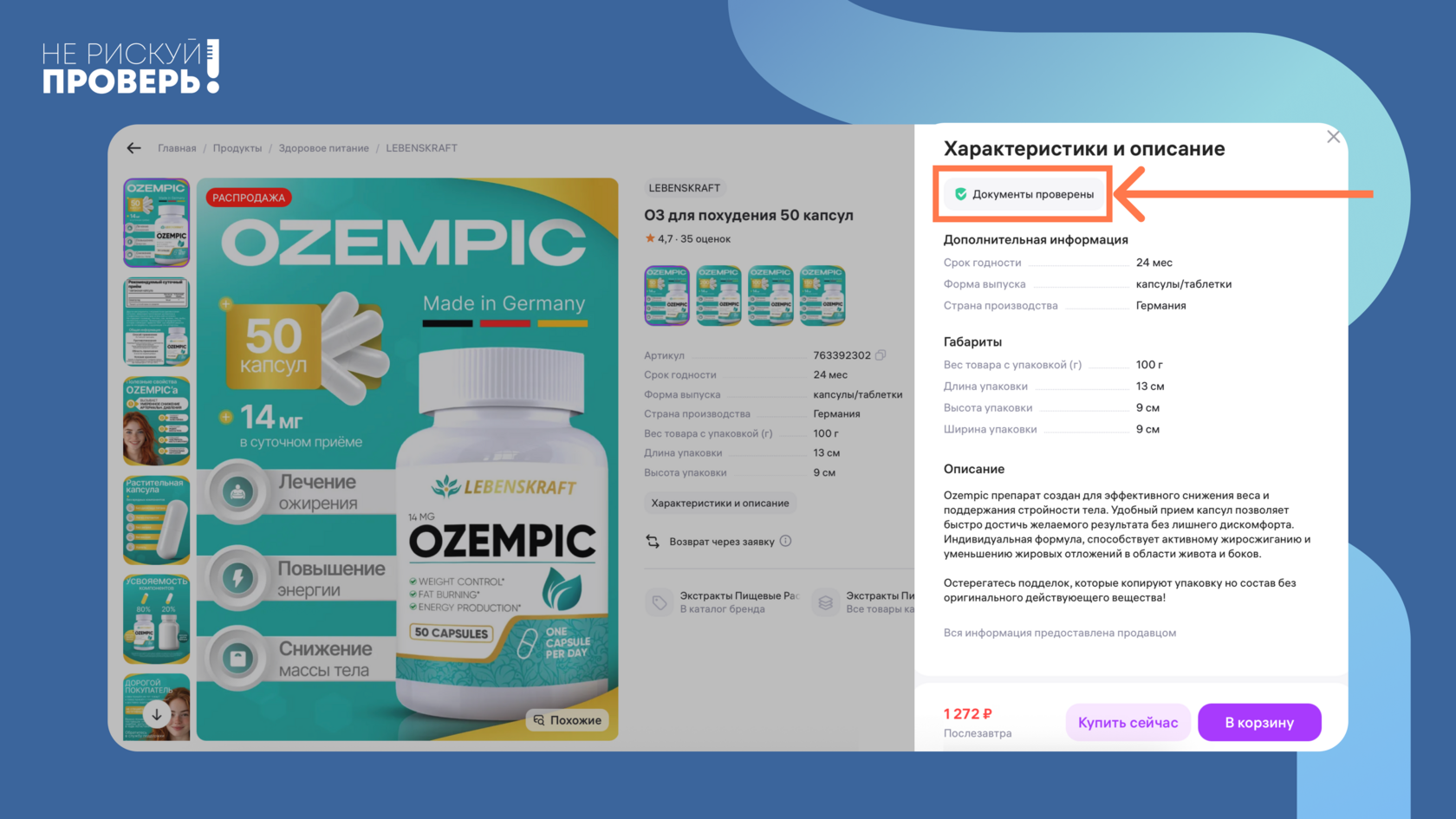 Речь идёт не о единичных позициях, а о масштабном ассортименте, который реализуется через крупный маркетплейс и сопровождается визуальными индикаторами «проверки документов». Для покупателя это создаёт впечатление, что товары прошли полноценный контроль, тогда как фактически доступная документация не подтверждает соответствие именно тех продуктов, которые предлагаются к продаже.