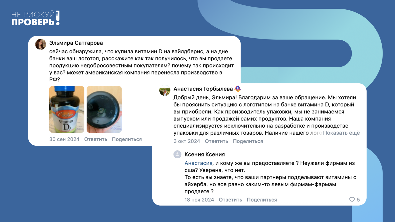 Внимательные покупатели, привыкшие к типовой упаковке завода „Протей“ по продукции российских брендов, замечают её использование и в якобы зарубежных БАДах на маркетплейсах